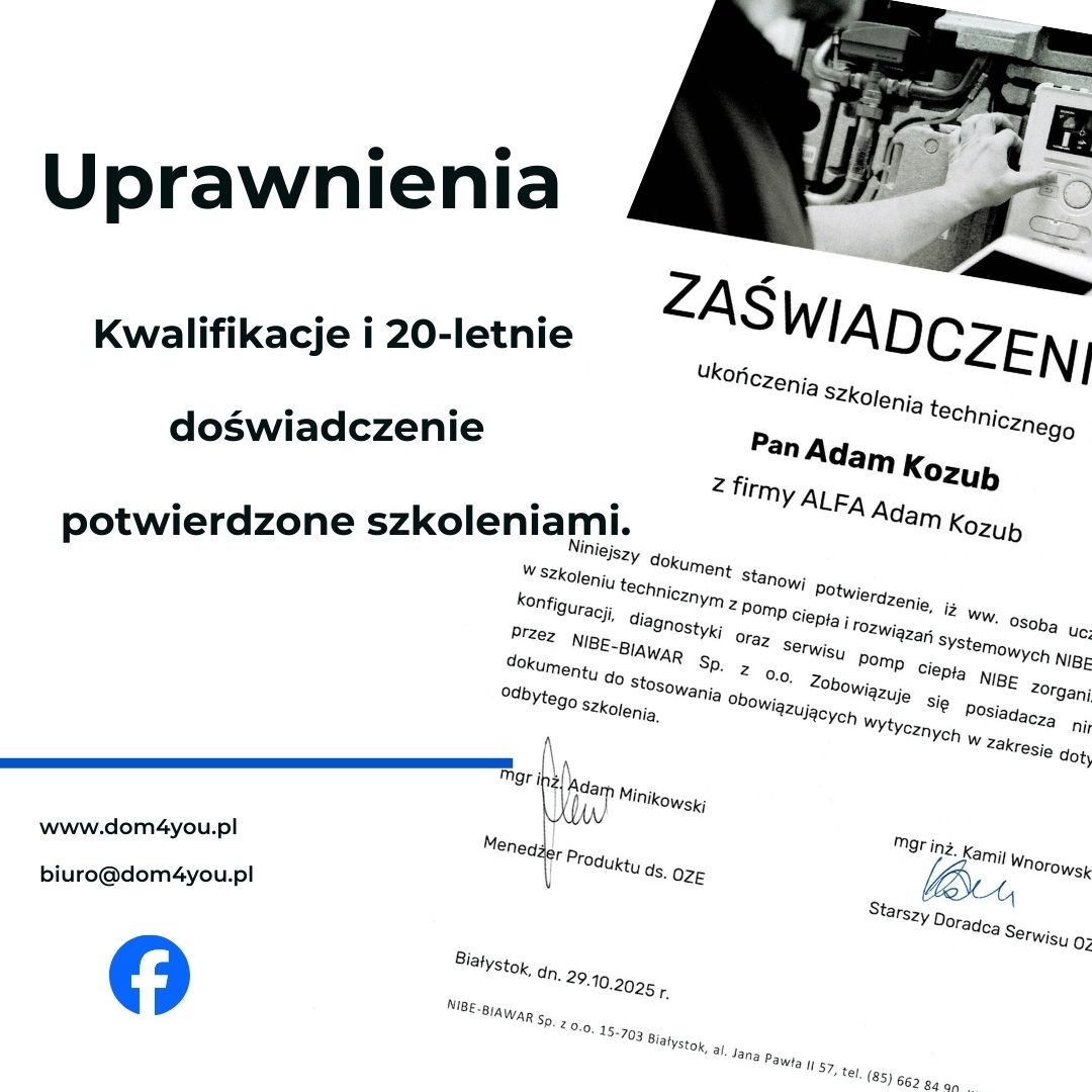 Od wielu lat zajmuję się instalacją systemów grzewczych opartych na pompach ciepła, wykonując zarówno montaż urządzeń, jak i instalacje ogrzewania podłogowego oraz odwierty pod dolne źródła. Dzięki temu cały system może być zaprojektowany i wykonany jako jedna spójna instalacja, w której wszystkie elementy współpracują ze sobą prawidłowo.